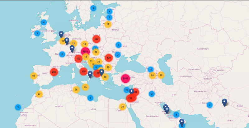 Карта на участниците в Европейската седмица на програмирането - 2019 година.